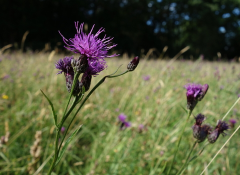 Saw-wort is a member of the daisy family that looks like a thistle without the spines. It gets its common name from serrated edges of its leaves. Its purple flower heads appear from July to September and can be seen on unimproved hay meadows and along woodland edges, particularly on chalky soils.